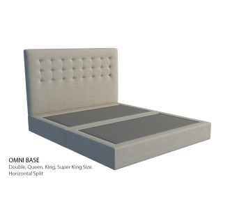 The Omni Ensemble Base is highly versatile and can fit into a range of room sizes. The King and Super King sizes are only available in either horizontal or vertical options. The base is 26cm thick with 9cm hidden legs or 7cm castors. The Omni Ensemble Bases have solid pine slates 8 x 2 cm and the gap between the slats is 7-8cm. In this model, the slates are covered in a dust-free fabric.