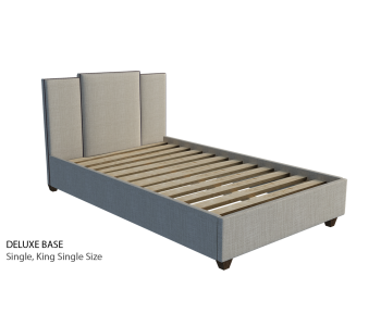 Similar to the Floating Slated base, however, the legs are not recessed. Instead, two legs will be visible at the foot end of the base. It also offers a sturdy 26cm wide side rail, which allows the mattress to easily rest 5cm inside the base.
